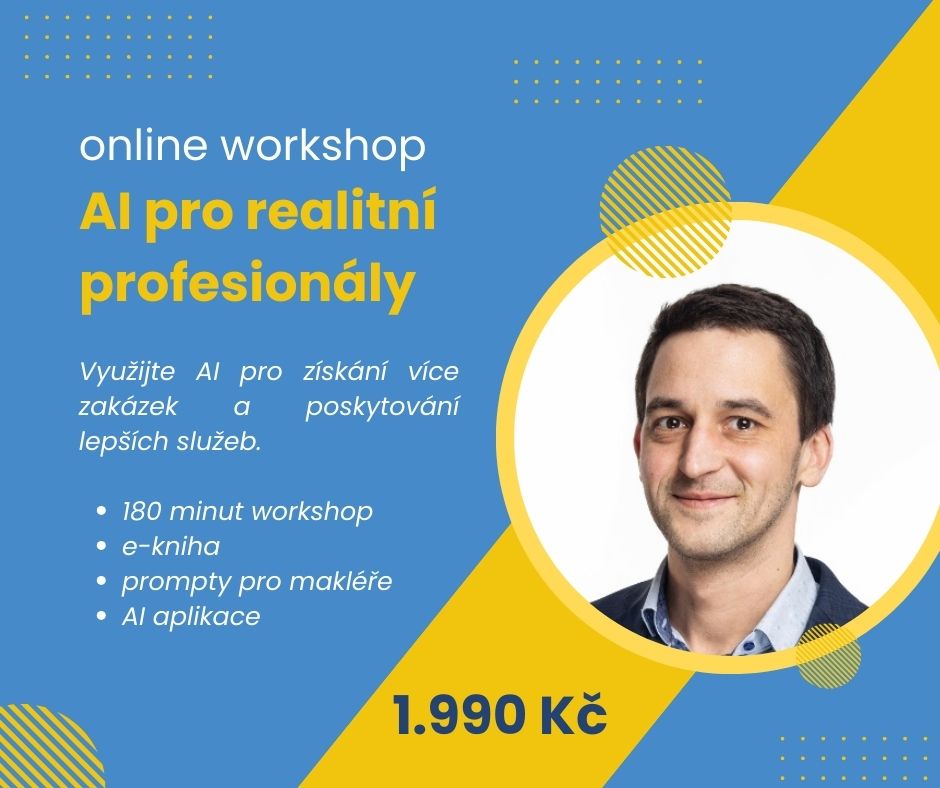 Chtěli byste umět využívat AI k získání více zakázek? Víte jak AI ve vaší práci využít? Pak vy vás mohl zajímat můj workshop speciálně na míru potřebám profesionálních realitních makléřů. Naučíte se využívat AI ve vašem byznyse.